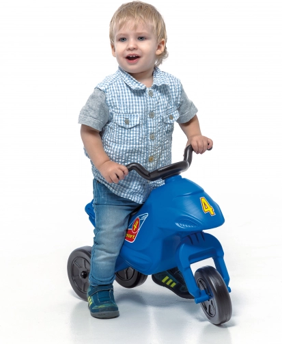 Könnyű, háromkerekű SUPER BIKE mini futóbicikli kék színben az első gurulásokhoz. Nyújt stabilitást a 3 keréknek köszönhetően, kompakt méretet 57×28×41 cm, valamint 25 kg teherbírást. Mutasson többet