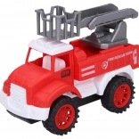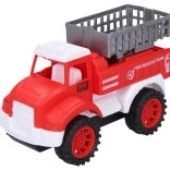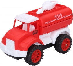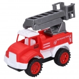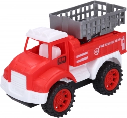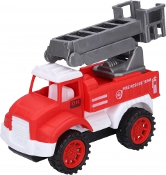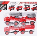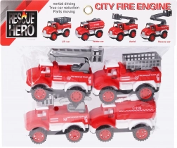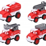 A készlet négy, 10,5 cm hosszú piros tűzoltóautót tartalmaz, mindegyik egy-egy különböző típusú járművet képvisel: