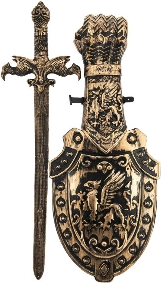 Fedezd fel a lovagok és kalandok világát ezzel a gyerekek számára készült műanyag karddal pajzzsal. Ez a kard úgy van tervezve, hogy biztonságos és szórakoztató legyen, éles szélek nélkül, alkalmas 3 éves kortól. Tökéletes kiegészítő a kis lovagok számára.
