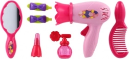 A készlet hét színben harmonizáló kiegészítőt tartalmaz, beleértve a rózsaszín hajszárítót és további alapvető elemeket a kreatív és biztonságos játékhoz. A termékek minőségi műanyagból készültek, amely tartós és biztonságos a három éves kortól.