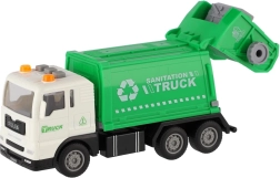 Ez a műanyag szemétszállító autó remek játék 3 éves kortól. A lendkerekes meghajtásnak köszönhetően könnyen elindul, a tetőn lévő fényhidak villognak, a hangeffektek pedig fokozzák a valósághű élményt. A nyitható és billenthető konténer támogatja a kreatív játékot és a finommotorika fejlődését.