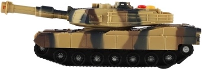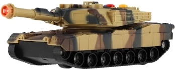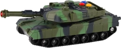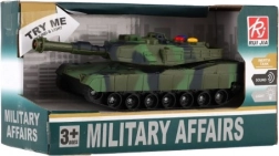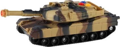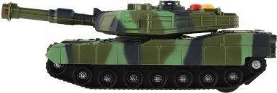 Stílusos, 17 cm hosszú műanyag tank a 3 éves kortól ajánlott kis katonáknak. A lendkerekes meghajtásnak köszönhetően könnyedén gurul a sima felületeken, és fény- és hangeffekteket kínál, amelyeket a tetőn lévő gombokkal lehet vezérelni. A torony forgatható a még több szórakozásért, a AG13 elemek a csomagban. Kétféle kamuflázs színben kapható.