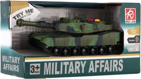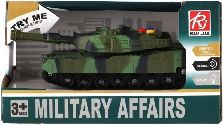 A RUI JIA MILITARY AFFAIRS sorozat katonai tankja valósághű szórakozást nyújt 17 cm-es, kompakt méretben. A lendkerekes meghajtás egyenletes haladást biztosít, a fény és hang pedig kényelmesen, a tetőn lévő gombokkal aktiválható. A masszív műanyag kivitel és a kamuflázs dizájn minden „küldetésnél” megmozgatja a fantáziát.