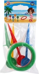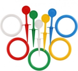 Egyszerű szabályok: szúrjuk a cövekeket a földbe és dobjuk rájuk a színes karikákat. Aki eltalálja, pontokat szerez! Az élénk színeknek és a cövekek valamint karikák változatosságának köszönhetően a játék könnyen felismerhető és vonzó tevékenység.