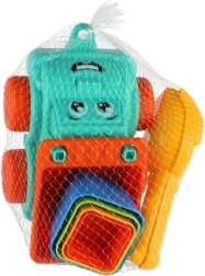Ezzel a színes homokozó készlettel gyermeke órákon át élvezheti a játékot a strandon vagy a homokozóban. A készlet tartalmaz egy autót teher részével, egy lapátot, gereblyét és 4 homokformát. Minden tartós műanyagból készült és könnyen hordozható praktikus hálóban. Ideális a motorikus képességek és kreativitás fejlesztésére.