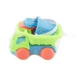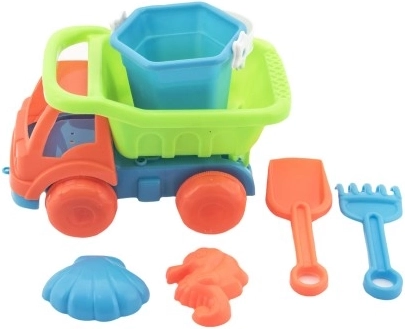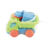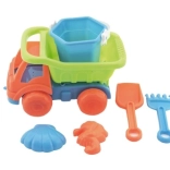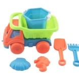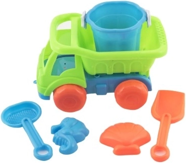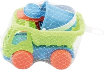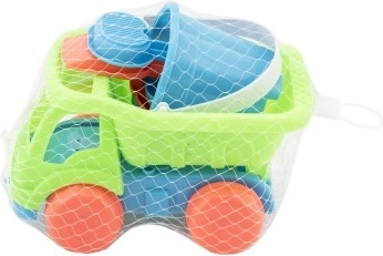 A készlet tartalmaz egy autót, vödröt, mini lapátot, mini gereblyét és formákat a teljes játékélmény érdekében.
