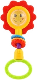 Támogasd a baba érzékszervi fejlődését egy játékos társsal a kis kezekbe. Ez a 2 az 1-ben csörgő és rágóka virág alakban vidám középrésszel (kis oroszlánnal vagy mosolygó arccal) kelti fel a figyelmet, és kellemes formáinak köszönhetően jól kézre áll.