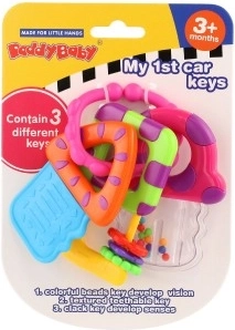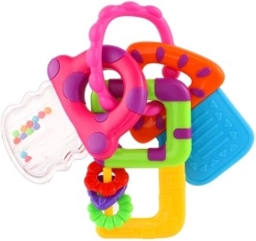 Fedezze fel a szórakoztató kulcsszettet, amely biztonságos rágásra és játékra készült. A változatos felületek enyhülést nyújtanak fogzáskor, a csörgő elemek támogatják a hallást, az élénk színek pedig stimulálják a látást. Könnyű kialakítása megkönnyíti a fogást az apró kezeknek.