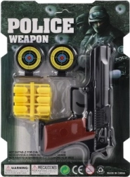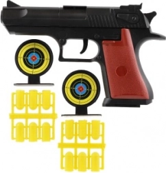 A csomag mindent tartalmaz, amire szükséged lehet: 12 töltény a hosszan tartó mókához és 2 kerek céltábla a pontosság gyakorlásához. A kis pisztoly dizájnja támogatja a fantáziát és a rendőrös vagy sportlövős szerepjátékot.