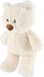 Ez a fehér plüssmackó a legkisebbek kényelmére és biztonságára készült. Puhácska kivitele és bájos arca tökéletes társsá teszi kiságyba, babakocsiba és útra is. A minőségi kidolgozás és a kellemes textúra fejleszti a gyermeki képzeletet és erősíti az érzelmi kötődést.