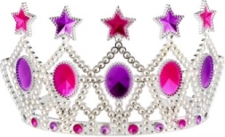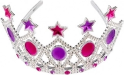 Könnyű műanyag tiara rózsaszín és lila kövekkel, amely mesés hatást kölcsönöz minden jelmeznek, és nagyszerűen illeszkedik a gyerek fejére.