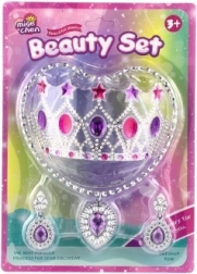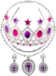 Teremts felejthetetlen, mesés pillanatokat az elegáns szettel a kis parádésoknak. A könnyű műanyag korona csillogó kövekkelhoz nyaklánc és fülbevaló társul összeillő színekben, amelyek királyi hangulatot adnak minden jelmeznek. A szett biztonságos otthoni játékra, jelmezes alkalmakra és gyerek fotózásokra készült.