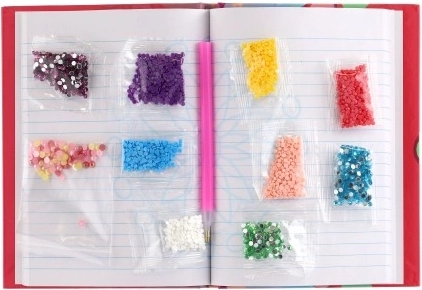 Változtasd a naplódat gyönyörű műalkotássá ezzel a kreatív készlettel! Öntapadós gyémántokkal egyedi kiegészítővé varázsolhatod a naplódat.