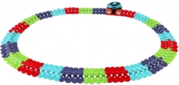 A versenypálya színes, összekapcsolható elemekből áll, amelyek lehetővé teszik, hogy a pályát különböző formákba hajlítsák.