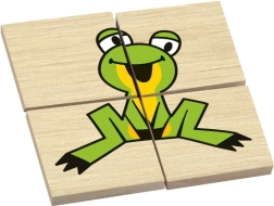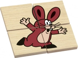Kisvakond, egér, sündisznó, nyúl, béka és mókus különálló, négy darabból álló kirakókon. Minden kép szórakoztat, tanít és fejleszti a gyerekek fantáziáját.