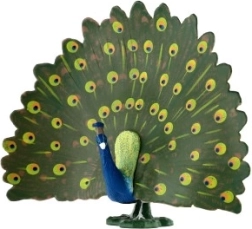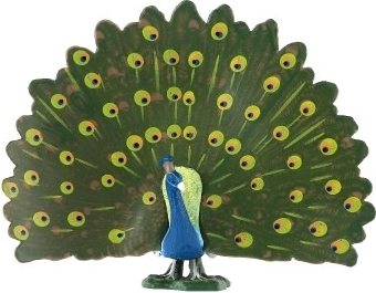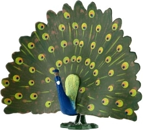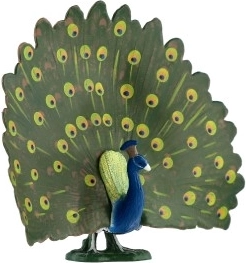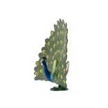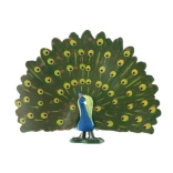 Ez a realisztikus műanyag figura a koronás páva fenséges megjelenését idézi meg, kiemelt színekkel és jellegzetes fejdísszel. A gondos kidolgozásnak köszönhetően jól érvényesülnek a fedőtollakon látható jellegzetes „pávaszemek”, valamint a kék test és a zöld tollak kontrasztja.