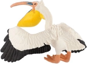 Ez a műanyag figura hűen ábrázolja az észak‑amerikai pelikánt jellegzetes hosszú csőrével és torokzacskójával. A realisztikus részletek, mint a kontrasztos fekete szárnyvégek és a sárga‑narancssárga csőr, örömet okoznak a kis felfedezőknek és a gyűjtőknek egyaránt. A figurát fel lehet használni természetismereti, madarakkal és ökoszisztémákkal kapcsolatos tanórákon, de akár gyerekszobai dekorációként is.