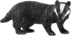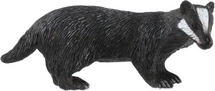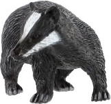 Ez a figura az eurázsiai borzot (Meles meles) ábrázolja, a fején jellegzetes fehér csíkokkal és sötét testtel. A realista részleteknek köszönhetően segít a gyerekeknek könnyen felismerni a fajt, és bővíteni az erdei állatokról szerzett ismereteiket, akár tanulás, akár játék közben.