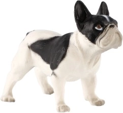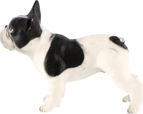 Feltűnően hű arányok, jellegzetes fülek és éber tekintet adnak a figurának a francia bulldogra jellemző autentikus megjelenést.