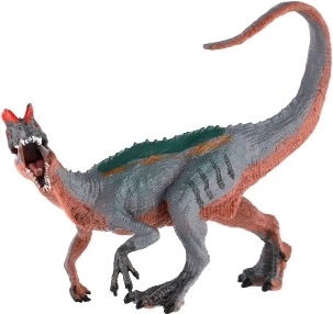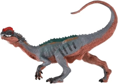A Dilophosaurus műanyag figurája hűen ábrázolja az alsó jura egyik legérdekesebb húsevőjét, amely kettős, félköríves tarajáról ismert. A valósághű színek, a precíz bőrtextúra és a dinamikus testtartás ösztönzik a képzeletet és felkeltik az érdeklődést a dinoszauruszok iránt.