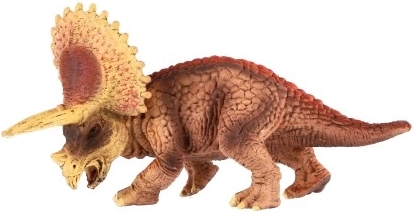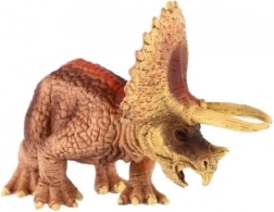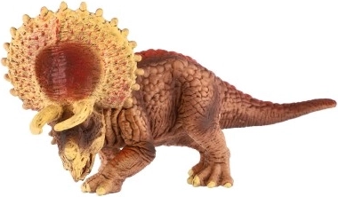 Ez a kis triceratopsz hűen ábrázolja az ikonikus „szarvas” dinoszauruszt karakteres csontos gallérral és három szarvval. A tartós műanyag kivitel realisztikus textúrával és természetes barnás-vöröses színezéssel tökéletes a mindennapi játékhoz és az őskori világról szóló ismeretek bővítéséhez.