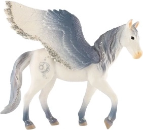 Ez a lenyűgöző, fehér és szürke színekben pompázó pegazus elvarázsol precízen formázott szárnyaival, sörényével és elegáns tartásával. A tartós műanyagnak köszönhetően ideális a mindennapos játékhoz, de dekoratív figuraként is megállja a helyét a gyerekszobában.