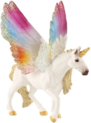 Ez a részletgazdag egyszarvú gyönyörű, szivárványszínű szárnyaival és finom arany akcentusaival a gyerekek játékába varázslatos fantáziavilágot hoz. A fehér, tartós műanyagból készült figura könnyű, kézre álló, és készen áll a mindennapi kalandokra a mesék birodalmában.