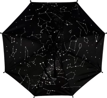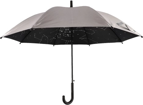Az esernyő belső oldala csillagos éggel van díszítve, amely eleganciát és egyedi megjelenést kölcsönöz.