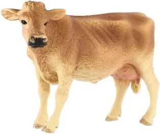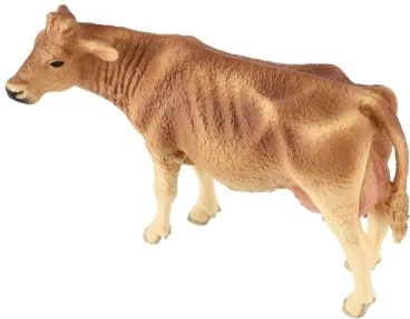 A műanyag tehén modell részletes textúrázással rendelkezik, amely a valódi Jersey tehenet utánozza.