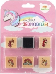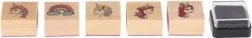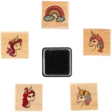 Fa bélyegzők párnával – unikornisok és szivárvány (5+1), 3 × 3 cm