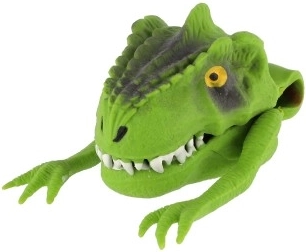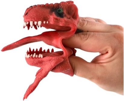 A dinoszaurusz ujjbáb remek játék a kis őskor-rajongóknak. A rugalmas, puha szilikonnak köszönhetően könnyen felhelyezhető az ujjakra, és élethű állkapocsmozgást tesz lehetővé. A gyerekek rengeteg történetet, bábelőadást és improvizált párbajt élhetnek át vele.