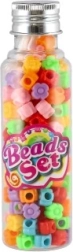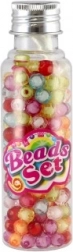 Műanyag gyöngyök zsinórral dobozkában – színmix