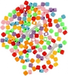 Műanyag gyöngyök (színmix) + fűzőzsinór