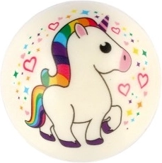 Élvezd az aktív szórakozást órákon át ezzel a vidám unikornisokkal díszített habgumi labdával. Puha habjának köszönhetően kíméletes a kézhez és a bútorokhoz, mégis jól pattog és könnyű elkapni. A színes keverék és a cuki motívumok támogatják a mozgás és a játék örömét.