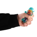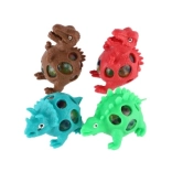 A dinoszauruszt különböző módon lehet nyomkodni, és garantáltan mindenhol jó szórakozást nyújt. Összenyomáskor a nyílásokon színes golyók buggyannak ki. A dinoszaurusz mérete: 7 x 5 cm. 3 éves kortól ajánlott.