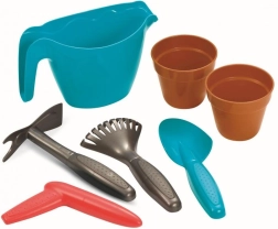 A csomag teljes eszközkészletet tartalmaz: locsolókanna az öntözéshez, két virágcserép az első ültetésekhez, lapát, gereblye, ásó és ültetőpálca. Így a gyerekek gyakorolhatják a finommotorikát, az együttműködést és a természethez való pozitív viszonyt.