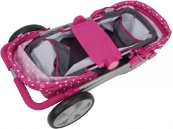 Gyönyörű babakocsi babáknak bájos pöttyös mintával és állítható fogantyúval a gyerekek kényelméért. Ideális 3 éves kortól, maximum 53 cm-es babákhoz.