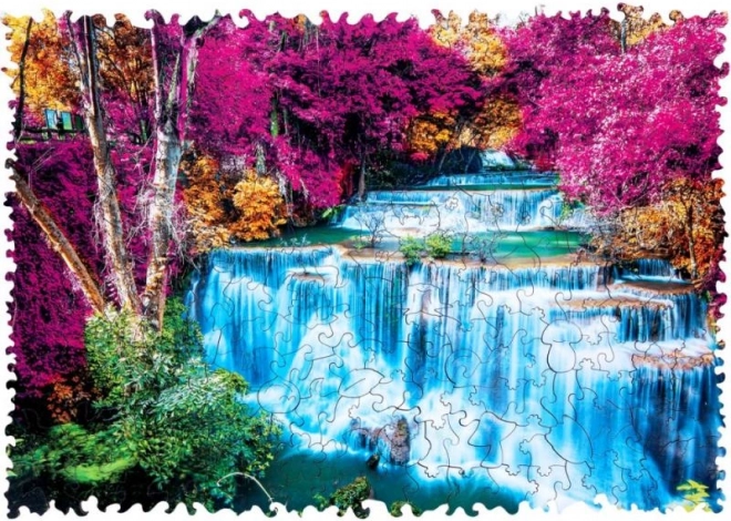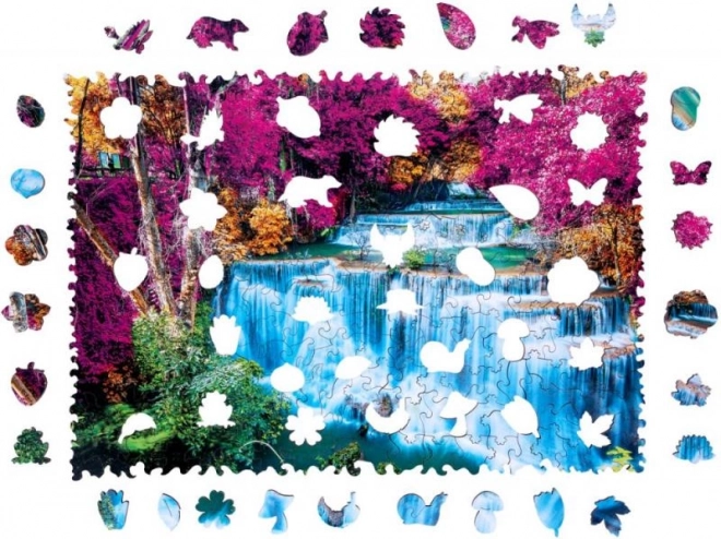 Ez a színes vízeséses fa puzzle élénk színeivel és precíz kivitelezésével hódít. Az elemek lézervágottak, egy részük állat- és növényalak, amelyek apró figuraként önállóan is megállnak. A kirakás szórakoztató és a klasszikus kirakóknál nehezebb, így kellemes kihívást nyújt felnőtteknek és ügyes gyerekeknek egyaránt.