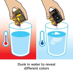 Mártsd a mozdonyt meleg vagy hideg vízbe, és figyeld az azonnali színváltozást. A hatás újra és újra megismételhető, így sosem unalmas.