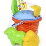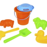 A csomag mindent tartalmaz: 18 cm átmérőjű (2 l) vödör, szita, lapát, gereblye és 3 forma. Minden elemet úgy terveztek, hogy a gyerekeknek kényelmes legyen fogni és könnyű legyen használni, és már 1 éves kortól alkalmas.