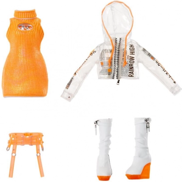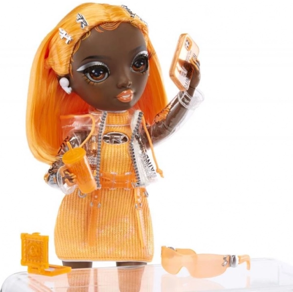 A baba alkalmas képzeletbeli játékra és modellként divatbemutatókra is. Kihívó narancssárga megjelenése és egyedi ruházata esztétikai élményt nyújt és támogatja a gyermekek kreatív játékát. Lépjen be a Rainbow High világába, és hagyja, hogy fantáziája magasra szárnyaljon!