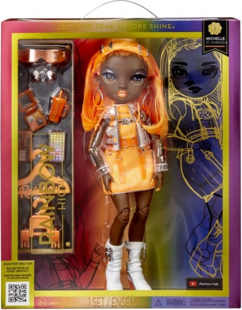 Fedezze fel a Rainbow High Michelle St. Charles divatbaba varázsát, amely nemcsak élénk narancssárga kiegészítői, de stílusos ruházata miatt is különleges. Körülbelül 22 cm magas, és ideális 6 éves kortól. Ez a baba nemcsak a képzelőerőt fejleszti, de nagyszerű ajándék is a 8.1 x 20.3 x 30.5 cm-es csomagjával.