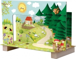 A mágneses színház állatokkal a mesék színes világát hozza el közvetlenül a gyerekszobába. A színes díszletek és a mágneses figurák könnyű, folyamatos irányítást tesznek lehetővé, így a kis színészek eljátszhatják kedvenc jeleneteiket, és új történeteket is kitalálhatnak.