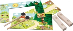 Minden figura beépített mágnest tartalmaz, amely rögzül a vezetőrúd mágneséhez. Így a gyerekek finoman mozgathatják a szereplőket a színen, és életre kelthetik saját meséiket.
