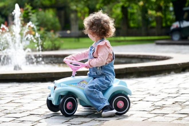 A közkedvelt BIG Bobby Car Classic egyszarvú témával remek választás első járműnek. Az alacsony súlypont és a masszív felépítés maximális stabilitást nyújt, míg az ergonomikusan formázott ülés ülve és térdelve hajtást is lehetővé tesz. A duda a kormányon támogatja az interaktív játékot és segíti a gyermeket a „forgalmi” helyzetekre adott reakciók elsajátításában a játszótéren.