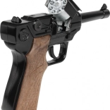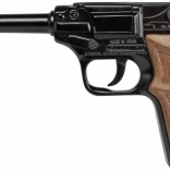 Élvezd az akciódús játékot a GONHER fém rendőrségi pisztollyal. Masszív váza élethű hatást kelt, ugyanakkor gondtalan gyerekjátékra tervezték. A mechanizmus 8‑lövetű gyűrűs durranópatronokhoz készült; könnyen behelyezhetők, és már indulhat is az akció.