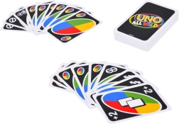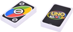 Az UNO All Wild! friss, pörgős változatát kínálja a közkedvelt kártyaklasszikusnak. Ebben a kiadásban nem kell színeket vagy számokat egyeztetni – minden lap vad, így csak az okos lépésekre és az ellenfelek figyelésére kell koncentrálnod. Az új, speciális kártyáknak köszönhetően minden kör egyedi és tele van adrenalinnal.