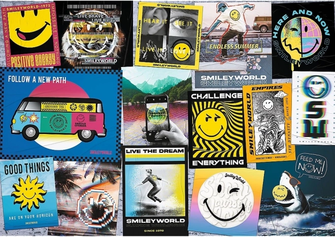 Élvezze a szórakozást és a jó hangulatot a 1000 darabos SMILEY kollekció puzzle-jével. Az ikonikus mosoly fotókból és plakátokból álló színes kollázsa pozitív energiát és remek kikapcsolódást nyújt a szabadidőben.