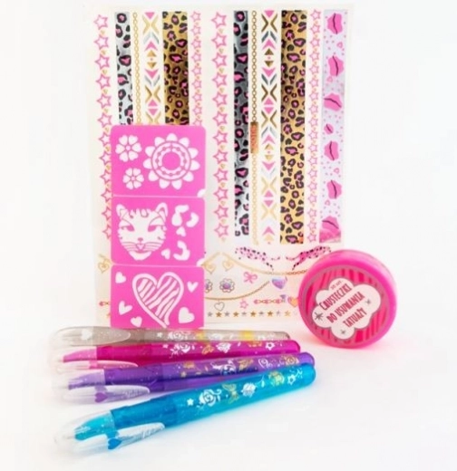 Tetováló készlet illatos zselés tollakkal és sablonokkal