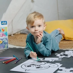 A kirakó hátoldalán két további szórakoztató tevékenység található: színezők és egy egyszerű, színezős elemeket tartalmazó játék, amely támogatja az alkotó kifejezést és fejleszti a gyerekek művészi érzékét.